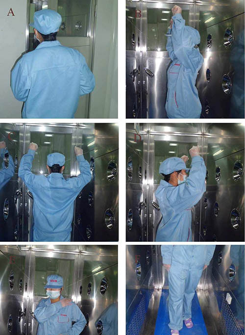 3.進入風淋室,關閉進門后,吹淋立即啟動;吹淋完畢后,進門以鎖閉,只能打開出門,從出門走出,此時不能強行推開進門,否則會損壞雙門互鎖系統。