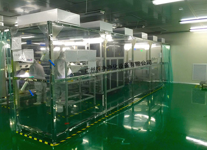 潔凈棚框架一般使用工業鋁型材,頂部可用不銹鋼鋼板、烤漆冷塑鋼板、防靜電網格簾及壓克力有機玻璃等材料。潔凈棚周圍一般都是采用防靜電網格簾或是有機玻璃,送風部均采用FFU潔凈送風單元。無塵車間一般采用泡沫彩鋼或是巖棉板吊頂有立墻,有獨立的空調送風系統,空氣經過初中高效三級過濾,人員及物料配有風淋室及傳遞窗潔凈過濾。
