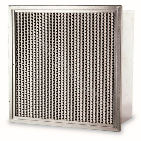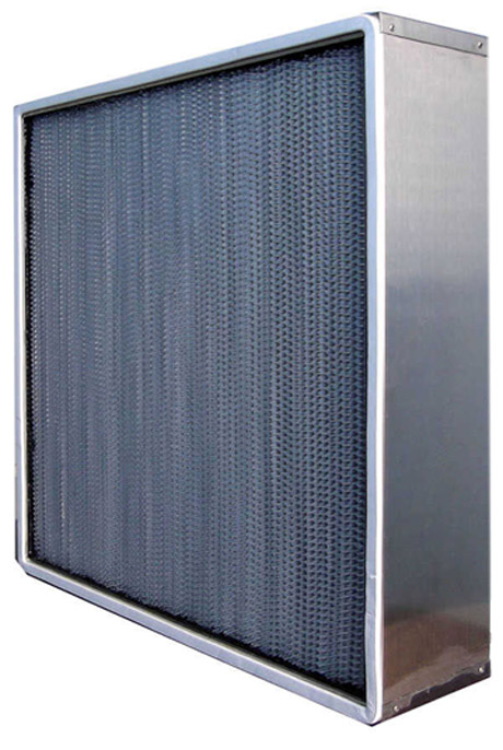 耐高濕高效過濾器以叫鋁隔板高效過濾器,耐高濕有隔板高效過濾器采用隔板式設計,波紋形隔板可以精確地保持褶層間距、在最小阻力下,最大限度地利用濾料。鋁隔板高效過濾器濾材兩面180褶翻折形成鍥形褶層,濾料折彎時有兩道壓痕,使鋁隔板高效過濾器濾料在隔板的尾端開成鍥形盒式褶層,鍥形盒式褶層可以防止濾料破損。在腐蝕性環境中,可使用鍍乙烯隔板,捕捉0.3um粒子效率99.99%。