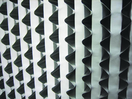 2.濾料采用耐高濕超細玻璃纖維濾紙制成,以鋁箔板做分隔。波紋形紙隔板或鋁隔板維持每一褶紙之間等距間隔,氣流易于穿過,確保濾材有效利用及增加強度。