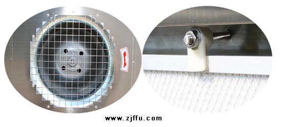 9、保護網:鋼網噴塑,進出風面均有金屬護網。