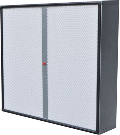 組合式耐高濕高效空氣過濾器主要用于過濾0.3um以上的空氣懸浮顆粒,作為空調系統的末端過濾,專為在低阻力下達到大風量需求設計。采用高容塵量,無隔板設計:濾料采用耐高濕超細玻璃纖維濾紙制成,以熱熔膠為分隔。熱塑性隔膠確保相同褶層間距,保證最佳氣流以最小的阻力通過,相同的褶層間距,充分的利用了整個深度的濾材,保證了更大的容塵量。