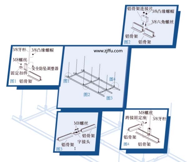 1.核對(duì)基準(zhǔn)線一核對(duì)基準(zhǔn)標(biāo)高線一吊桿預(yù)制一放樣吊桿安裝一吊桿安裝一吊頂龍骨預(yù)制一吊頂龍骨安裝一吊頂龍骨水平調(diào)整一吊頂龍骨定位一十字補(bǔ)強(qiáng)片安裝一測(cè)量畸零龍骨尺寸一界面收邊一吊頂龍骨壓蓋安裝一吊頂龍骨水平調(diào)整。